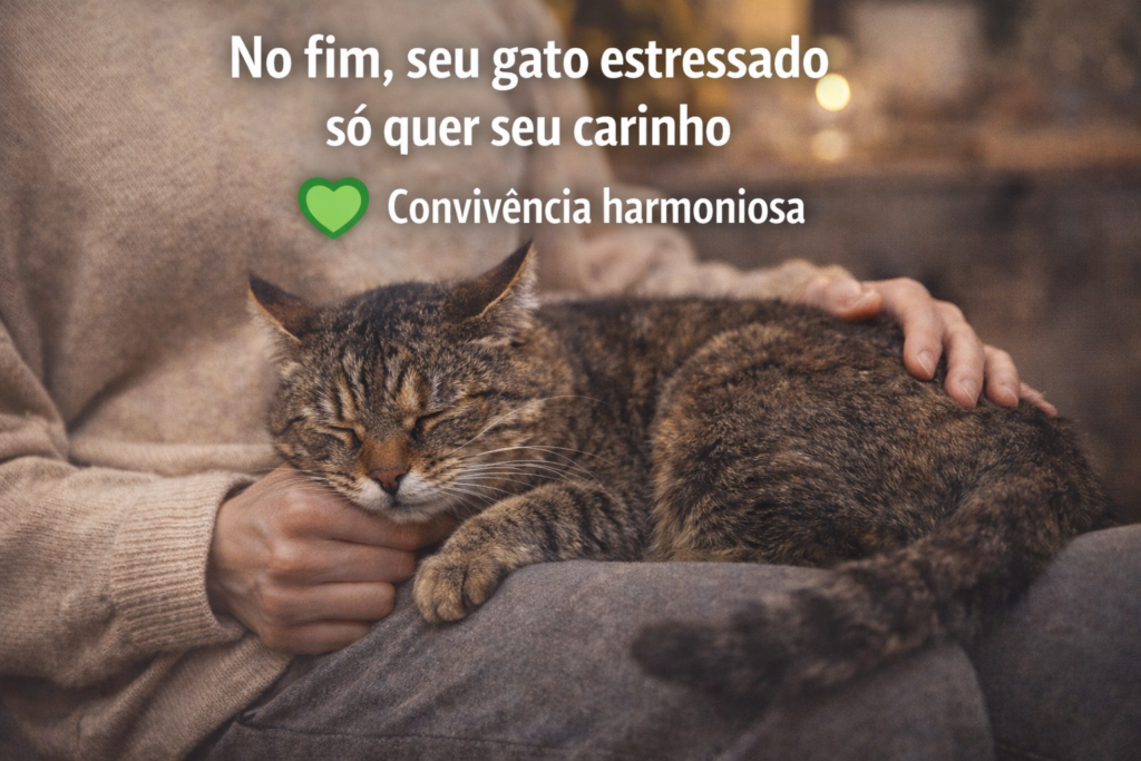Quando um gato estressado fica agressivo ao receber carinho, a solução não é “carinho mais forte” — e sim aprender sinais de limite e oferecer controle ao gato.